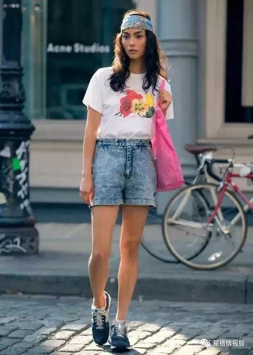 牛仔短裤白色t恤明星,明星演绎夏日街头时尚风潮